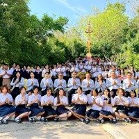 ไหว้พระพุทธสวายจีกสิกขปัญญามหามงคลชัย พระประจำโรงเรียน และไหว้ ศาลพระภูมิเจ้าที่ ของนักเรียน ม.3 ม.6