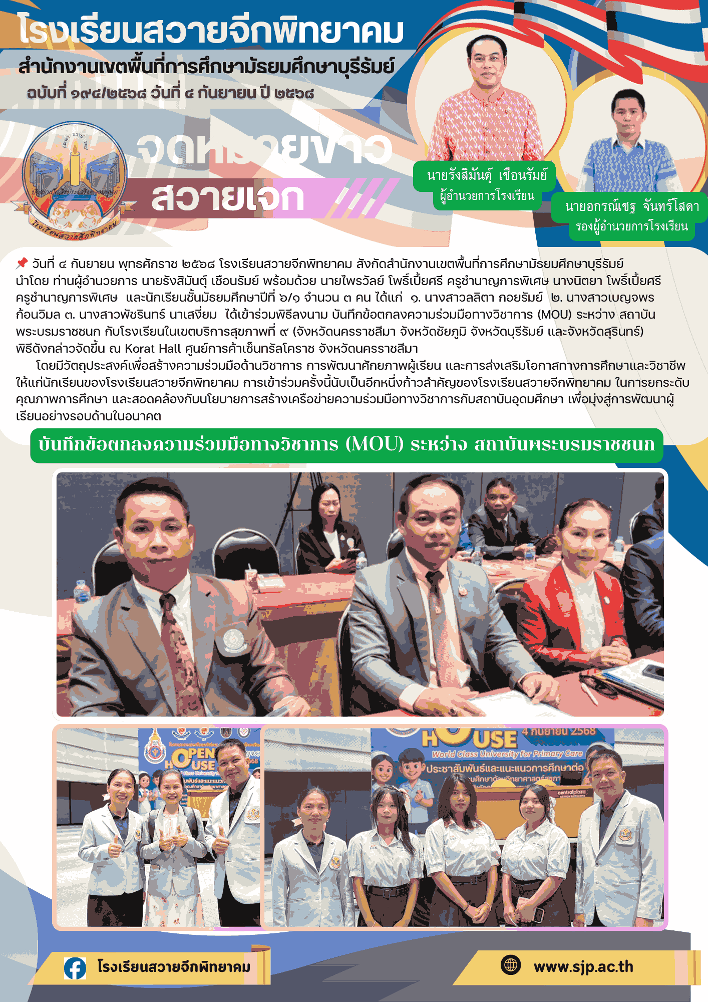 ประกาศโรงเรียนสวายจีกพิทยาคม เรื่อง แจ้งการสอบจัดห้องเรียน ชั้นมัธยมศึกษาปีที่ 1 และชั้นมัธยมศึกษาปีที่ 4 ในวันเสาร์ที่ 5 เมษายน 2568  01 เม.ย. 68